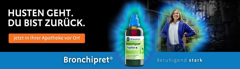 Vertrauen Sie bei Husten auf die wirksame Hilfe aus der Natur – Bronchipret®. Das pflanzliche Arzneimittel enthält Thymian und Efeu und bietet für jeden die passende Darreichungsform. Speziell für Erwachsene, die sich eine schnell spürbare Wirkung wünschen eignen sich die extra starken und hoch konzentrierten* Bronchipret® Tropfen. Für Kinder ab 1 Jahr wirkt und schmeckt der zuckerfreie Bronchipret® Saft TE.